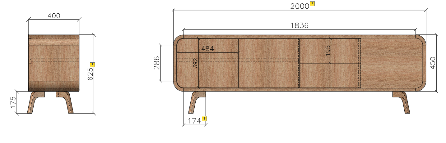 Dimensions: 200 cm (78,7 inch.) wide, 40 cm (15,6 inch.) deep, 62 cm (24,5 inch.) tall